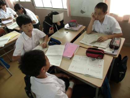 住中が研究している協同学習の証拠写真?といっては何ですが、大雨で校務員さんと校舎内の雨漏りを点検していたら、なななんと(今日2回目)ビッグショットに成功しました。2年生のある授業をのぞくと、子どもたちの頭が集まっている集まっている!!それだけ相談しているということです。私が入ったとたん、「誰や」という感じでその瞬間は撮影できませんでしたが、グループ学習の瞬間です。間違わないでください。まず、自分でしっかり考えて、それから自分の考えをグループ内に自分の口で発表する。これで、全体でやっていれば、多くて10人ほどの発表機会が3倍にも4倍にもなります。初めから他人を頼りにするのが協同学習ではありません。