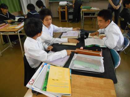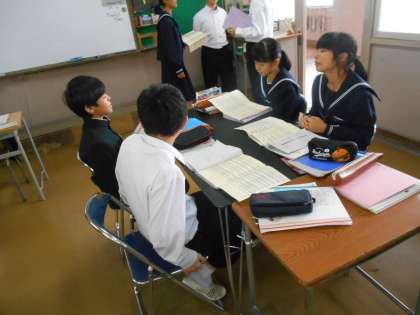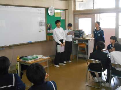 この英語も生徒の活動がしっかり保障されていました。先生の説明が簡潔で、生徒が英語を話す時間がたっぷりありました。授業始めに順番で、英語で今日の日付、時刻などを聞くようになっています。毎回のことなので、自然に英語で答えていました。