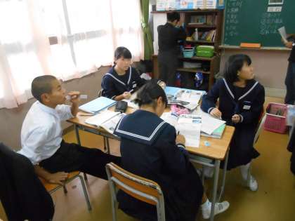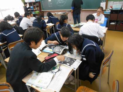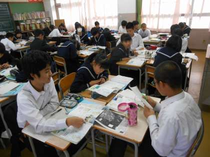 九州についてまとめていました。地図帳とにらめっこをしている生徒もいました。