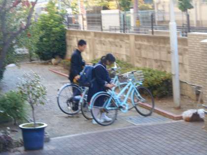 後期生徒会役員の人たちが泉小学校のあいさつ運動に行きました。今日は特別に自転車で来ています。お疲れ様でした。