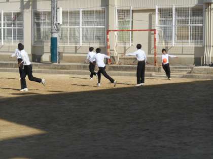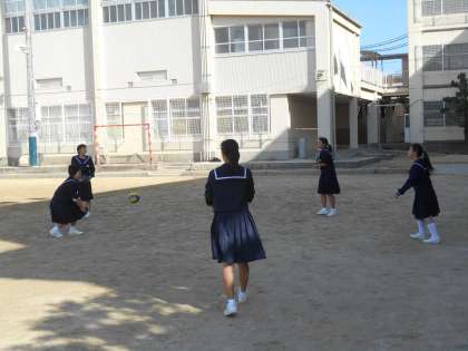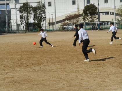 3年生がサッカーとバレーで遊んでいました。