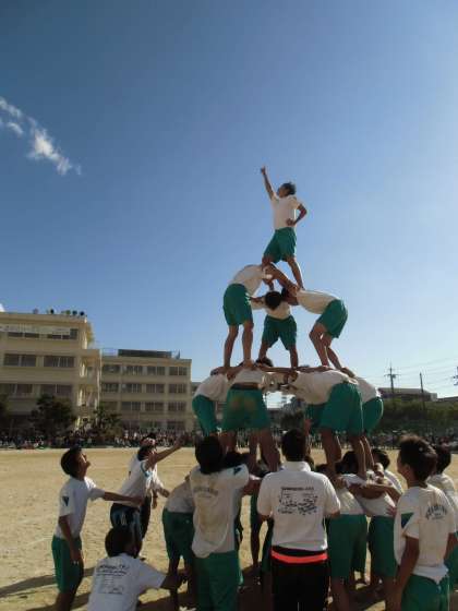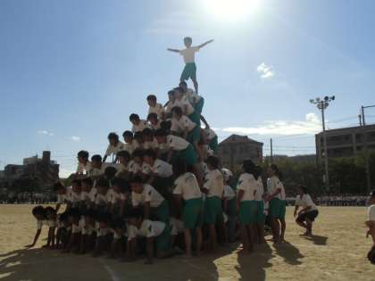 逆光の中、輝いていますね、男子組体。