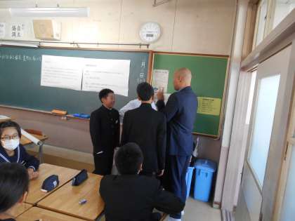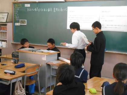 写真は、東京のレストランを舞台とし、関西弁を話すお客さん2人と東京の店員さんとのやりとりをロールプレイしています。