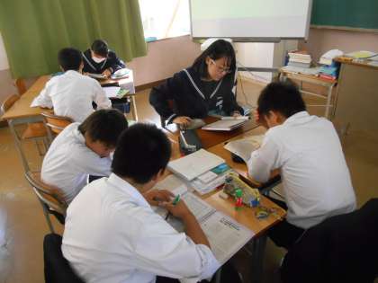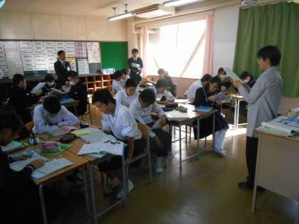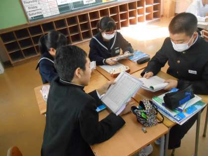 ペアで英会話の練習が始まりました。3年生になると8割程度は英語で指示が出ます。