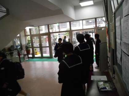 生徒会と校風委員の人たちが立ってくれました。連日、ありがとう。