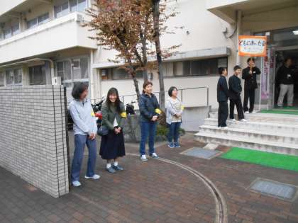 ありがとうございます。今日は雨が気になる中でのご参加でした。この一週間でなんとのべ67名の保護者の方にあいさつ運動に参加していただきました。感謝、感謝、感謝です。