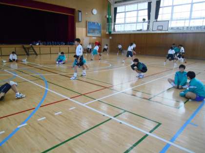 準備運動が始まり、練習に入るところです。