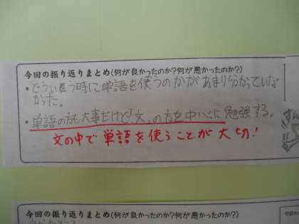 英語の単語を文の中で覚えることが大事、と書いています。すばらしい。