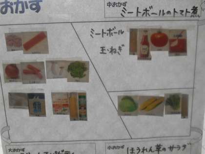 栄養教諭の先生が毎日、おかずの写真を貼っています。一つひとつのおかずを大事にしているな、と思います。