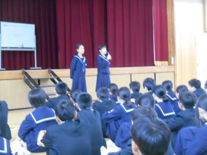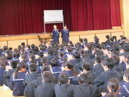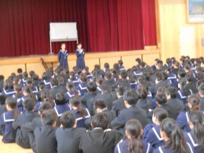 今日の生徒集会は、なんとすばらしかったことでしょう。各委員会から活動報告、メッセージの報告がありました。写真は、1年学級委員会です。「72期生はワンピースの精神でいきます。アニメのワンピースではありません。一人ひとりがかけがいのない存在として大事にしていく、という意味です。」これを聞いた瞬間、背筋がゾクゾクしました。どうしたら、こんなにすばらしいことを言ってくれるようになるのでしょう。