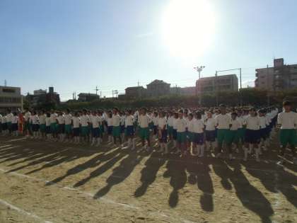 体育大会から一週間。早いものです。写真は校歌を歌っている時の様子です。体育大会の閉会式の疲れきったあの場であれほど声が出ることがとてもうれしかったです。吹奏楽部の人も毎日朝練夕練とおつかれさま。