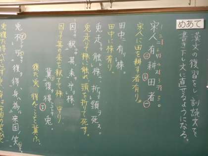 漢文の勉強です。レ点、一、二点などを使って書き下し文を作ります。