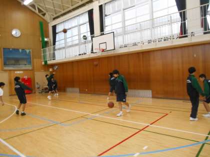 女子バレーと男子バスケット部です。
