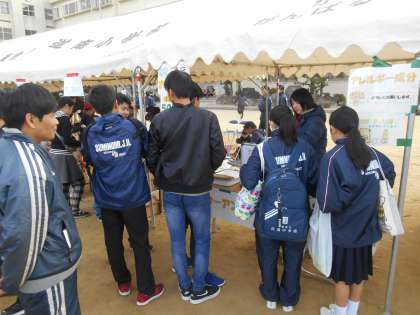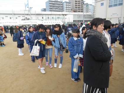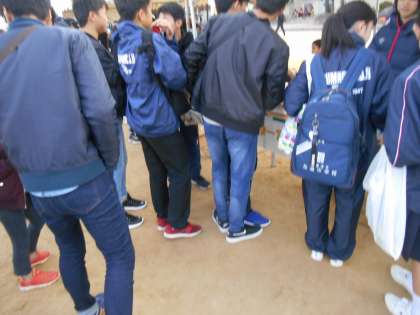 あすなろ学級のサーターアンダギーに並ぶ行列です。500個売り切れました。すごい人気です。