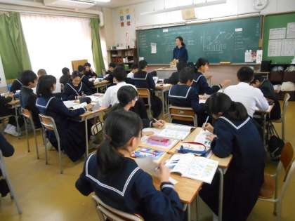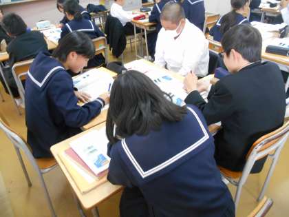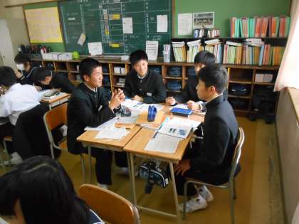 この授業も学習班を活用していました。生徒たちも慣れているようです。