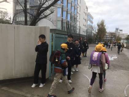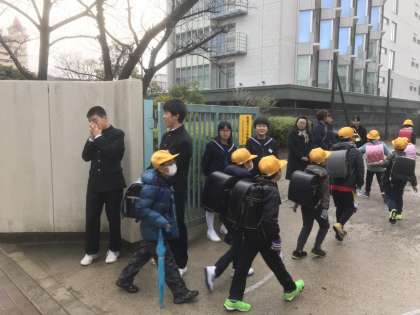 生徒会役員の人たちが昨日、住道南小学校にあいさつ運動に行きました。小学生も元気なあいさつを返してくれました。ありがとう。