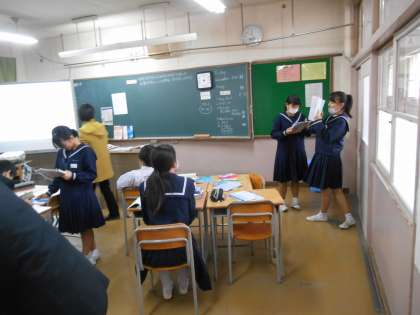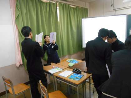 ペアやグループでのスピーキング練習をしていました。終われば着席していきます。