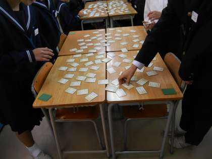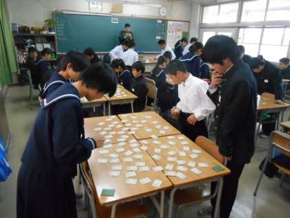 先生が読み上げ、必死で探しています。見つけても「これで、合ってるよな。」と隣の人に確認しながら進んでいきます。