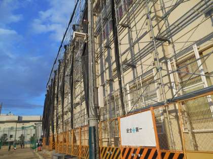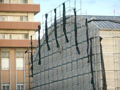 今日の工事は特に進んだことが目で分かるわけではありません。足場組みを完了し、屋根がどうなっているのか精査しているとのこと。大掛かりなことは3学期とのことです。