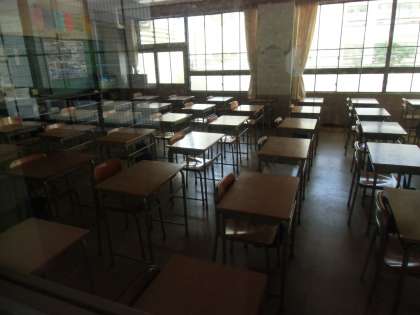 おはようございます。今朝はテストの日ということで、朝の巡回ではほとんど生徒はいませんでした。いつも警備員さんがパトロールを終え、そうじもしてくれます。ありがとうございます。2枚目、ピシッと並んだ机、いいですねえ。