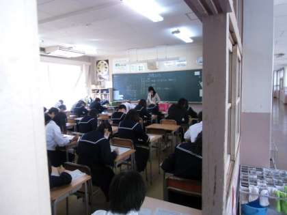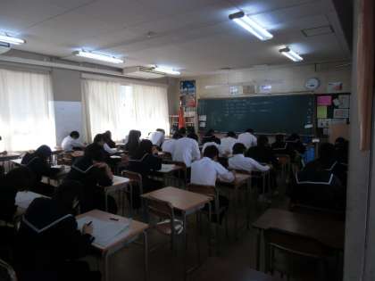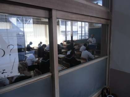 全クラスのテスト風景を撮影しました。テスト中にドアが開いては気が散ると思い、ドアが閉まっている教室は廊下から撮影しました。