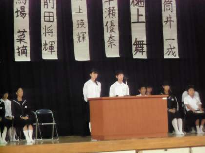 今日の3時間目は、体育館にて生徒会の役員選挙が行われました。信任投票で全員が決まるのではなく、複数の役職で選挙になるという理想的なものになりました。どの立候補者も立派に公約を述べていました。昨日のリハーサルもしっかりできていた証拠ですね。