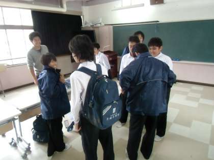 冬の季節を前にウィンドブレーカーのサイズ合わせに業者が来てくれました。ああじゃ、こうじゃ、言いながら試着していました。
