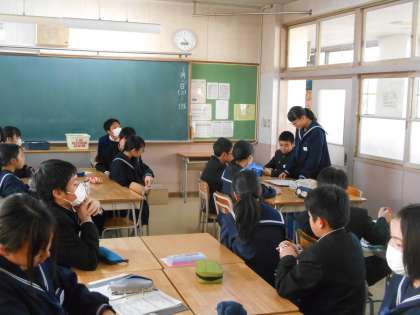 今日は学級閉鎖もあって、クラスを回る時間があまりありませんでした。そこで、終学活も見て回りました。一日の反省をする大事な時間です。日直さんの司会で各班からの意見を発表していました。うれしいことがありました。なかなかごめんなさいが言えなかったのが、今日は言えた人がいたそうです。そのことを知った人が、「〇〇くん、今日は素直に謝ることができました。拍手してください。」と言っていました。すばらしいことですね。どちらも。