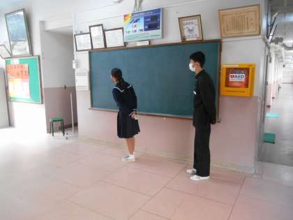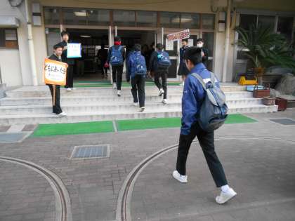 1年生が学級閉鎖になっているので、登校する生徒は少なく感じました。1枚目は吹奏楽部の人たちです。3枚目は校風委員会の人たちです。ありがとう。