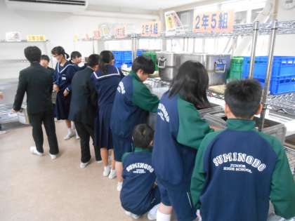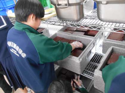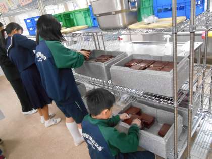 給食感謝週間の一環として保健委員会が完食調査をしています。給食に感謝し、できる限り残さず食べようということで取り組んでいます。保健委員さんたちは、できるだけ食べようという意識があるので、たまに多く残っている容器を見つけると、残念という表情をしていました。取り組み、ありがとう。