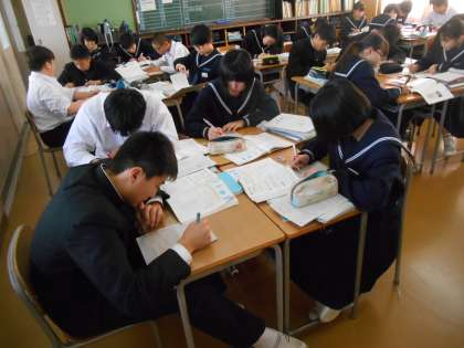学習班なので、少し相談しかけた生徒がいたので、「今は個人思考でいこう。」ときっぱり。これも大事なことです。基本はまず、自分で考えること。そうすることで、協同の時間がより充実します。
