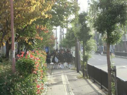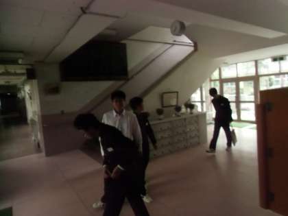 おはようございます。朝の登校風景から。遠くに見えるのはラグビー部の朝練です。今朝、学校周辺のゴミ拾いをしていたら、ある女子生徒が「キャー。」と言うので、ドキッとすると、「あ、教頭先生やん。今日だけそうじしているの?」「毎日してるで。」「えー、すごいやん。」とのこと。私はこの生徒の気持ちに100倍の元気をもらいました。こちらこそ、ありがとう。