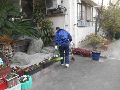 今朝も寒さが厳しい中、環境整美活動をしていただきました。ありがとうございます。