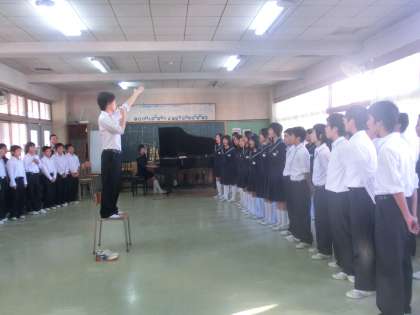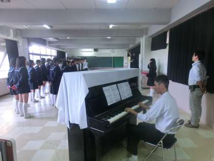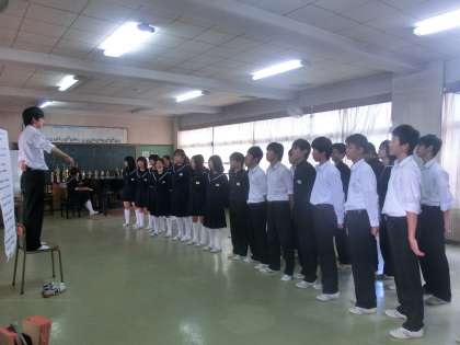 今日から合唱コンクールの特別練習が始まりました。どのクラスも気合い十分。パートリーダー中心に練習が進んでいます。さすがに3年生。1年生も3年生の合唱練習の見学に来ました。