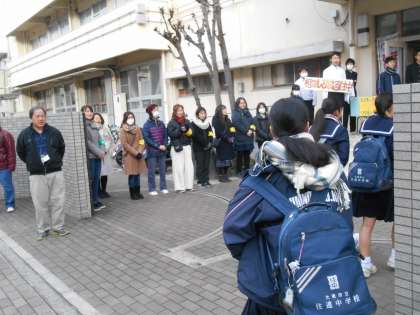 2月のPTAあいさつ運動最終日にはなんと、20名の方に来ていただきました。感謝です。ありがとうございます。
