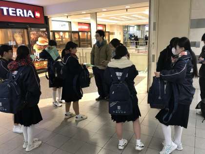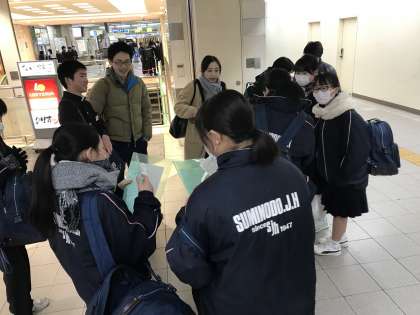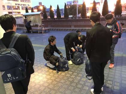 本日は私立高校等の入試の日です。住道駅で、確認、激励ののち出発するところです。みんながんばれ。