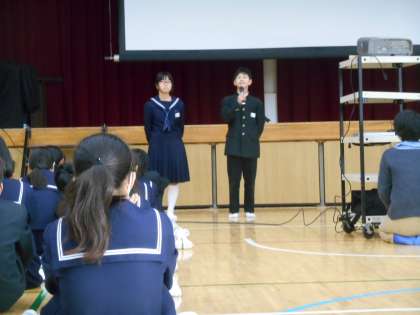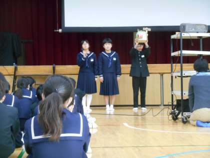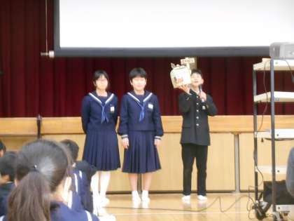 最後の発表は生徒会役員からでした。「ともにあった会」の話と、生徒会活動についての意見等があればこの箱に入れてください、と話していました。