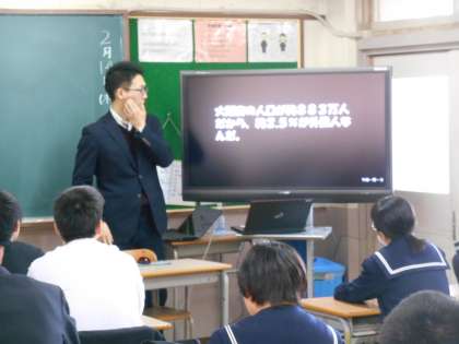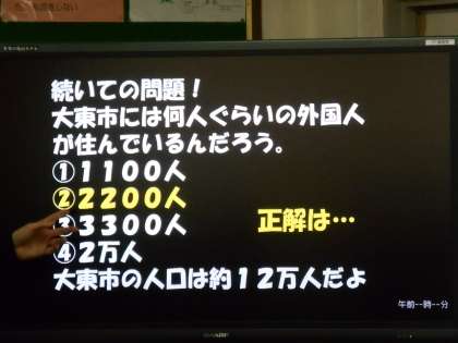 このクラスでは6限に多文化共生について学習しました。写真は大東市に在住している外国人の数を確認しているところです。