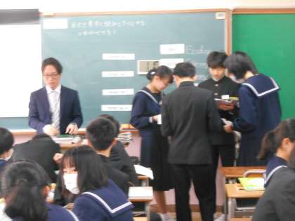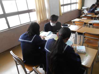 英語で問答をしているところでした。「校長先生、英語分かりますか。」と言ってきたので、「I don't know」と回答しました。やっぱり、という顔をされました。