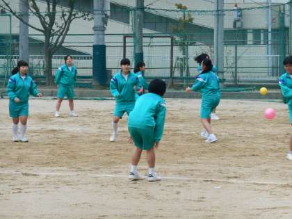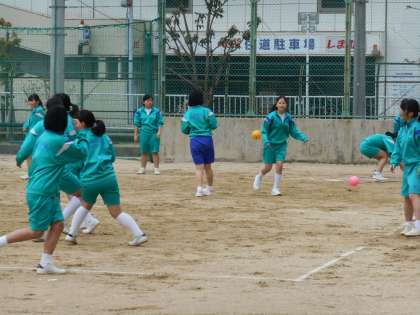 小さなボールで、ドッチボールです。ものすごく迫力がありました。見ていると、少し怖いです。