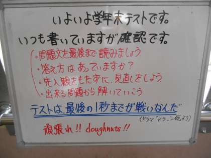 1年生のあったか黒板です。ドラゴン桜の言葉らしいです。