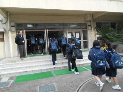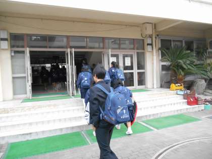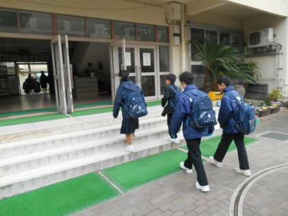 テスト中で生徒会の人たちはいませんが、先生たちであいさつ運動をしました。