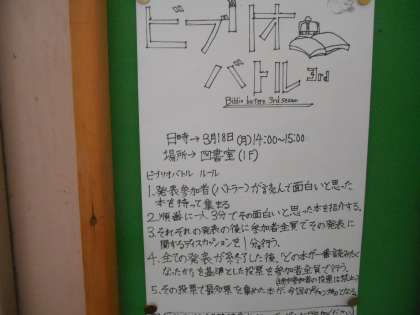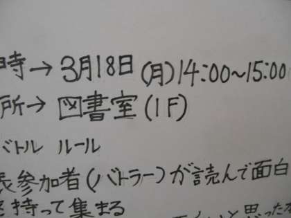 3月18日にビブリオバトルが予定されています。本好きな人はぜひとも、応募してください。