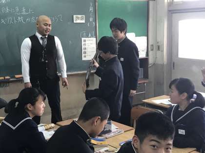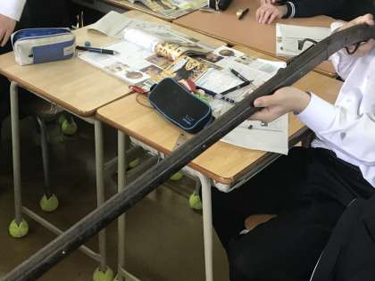 驚きました。本物の火縄銃です。正式に許可を得ているものです。生徒は手にとって喜んでいました。