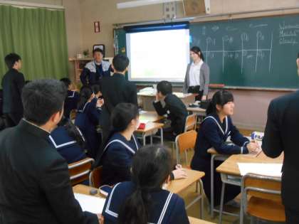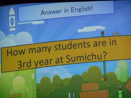 今日の英語はAETの先生が英語で質問して、それにグループで答えるという授業でした。