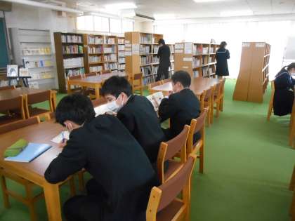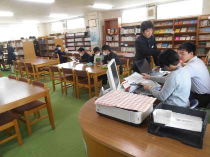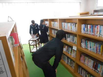 大好きな本を読みに図書室に来ていました。図書委員の人が貸し出し作業を楽しんでやっていました。