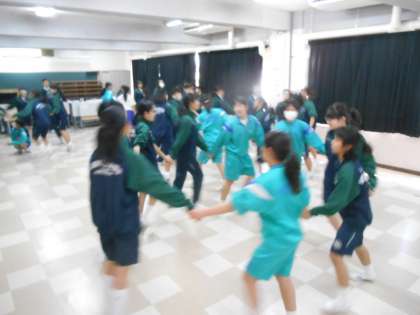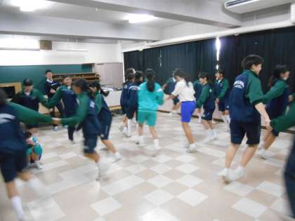多目的室です。始めはビデオを見て踊っていましたが、私が入ったときに「じゃ、マイムマイムを踊りましょう。」と輪になってマイムマイムが始まりました。けっこう運動になります。