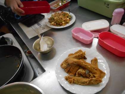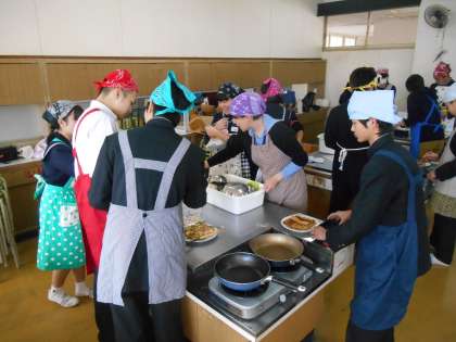 沖縄学習の一環で今日は沖縄料理を自分たちで作って食べました。