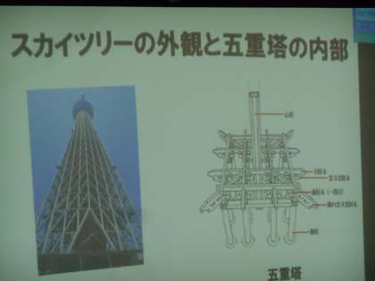 スカイツリーと昔の五重の塔の心柱(しんばしら)を比較して学習していました。現代と何百年前と科学の進歩はぜんぜん違うのに、なぜ、昔の人はあんなにすばらしい建築物を築けたのでしょう。不思議です。