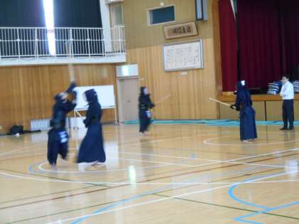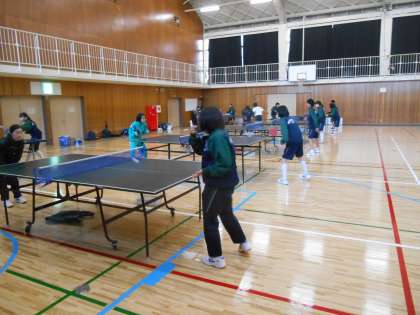 卓球部と剣道部です。剣道部の気合のこもったかけ声が体育館に響いていました。すばらしい。